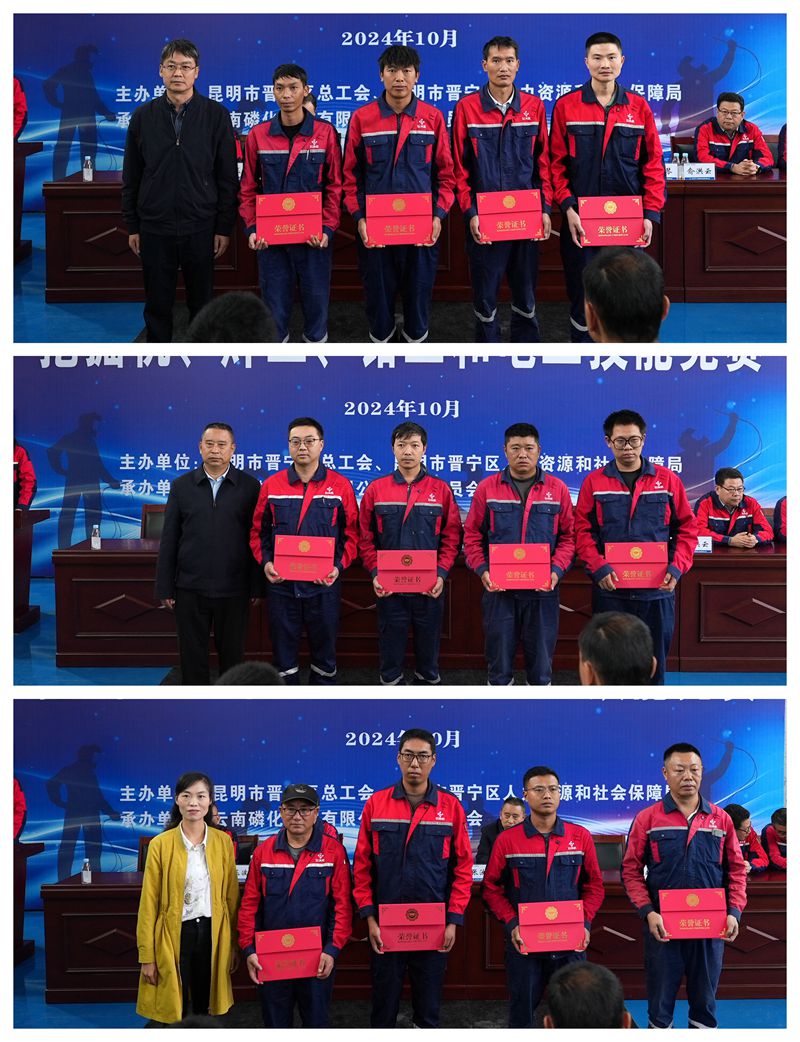 經(jīng)過(guò)一天的激烈比拼,公司昆陽(yáng)磷礦職工郭林慶、檢維修中心職工沈君縣和楊強(qiáng)、尖山磷礦職工王正山以優(yōu)異的實(shí)操成績(jī)分別奪得挖掘機(jī)、焊工、電工、鉗工技能競(jìng)賽冠軍,并被授予2024年晉寧區(qū)挖掘機(jī)、焊工、電工、鉗工技能競(jìng)賽“技術(shù)狀元”榮譽(yù)稱號(hào)。
